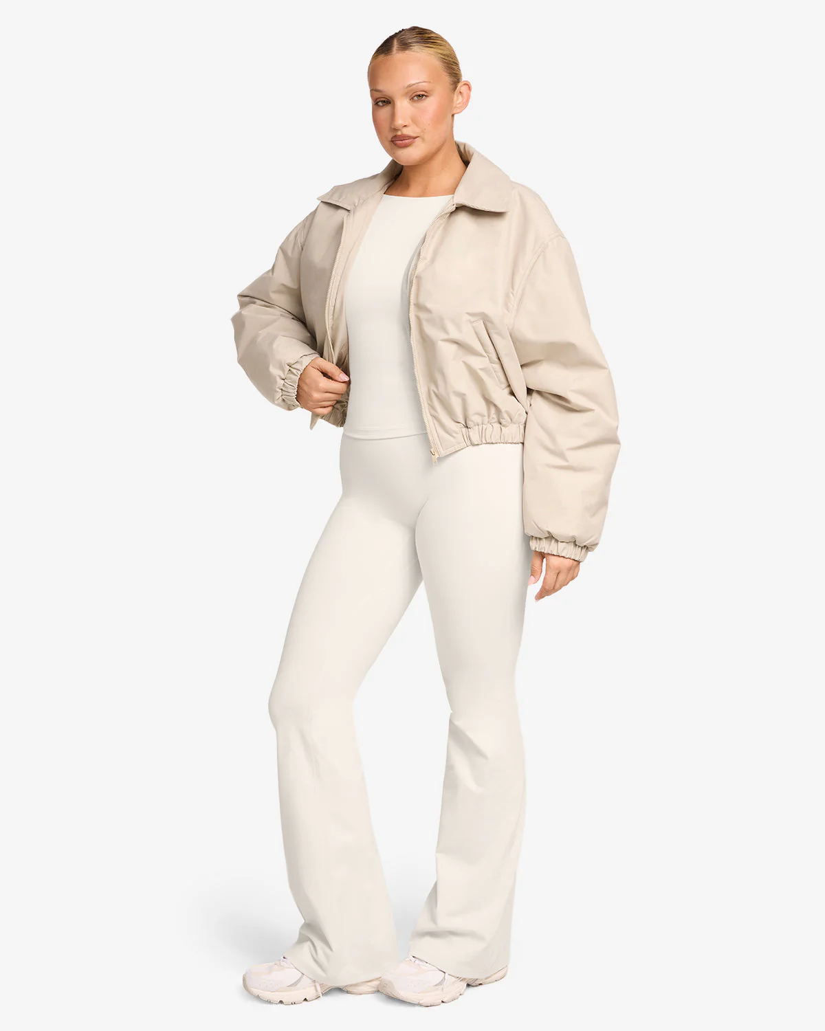 Cropped Oversized Bomber Jacket | Fawn